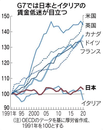 値上げをタブー視する「我慢の戦略」を続けた結果、1990年代から賃金が上がっていないのは主要7カ国(G7)で日本とイタリアだけだ。